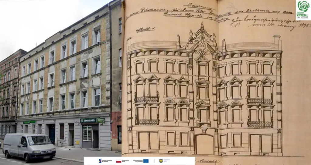 Projektantem budynku przy ul. Piłsudskiego 80 był Karl Mainka. Pierwsza przebudowa budynku polegała na dobudowie toalet – projekt wykonał inż. August Miersch (1903 r.), druga przebudowa to dobudowa komina i zmianie układu otworów w oficynie – projekt wykonał mistrz murarski Johann Hytrek (1905 r.), trzecia przebudowa polegała na dalszym poprowadzenia instalacji wodnych – projekt wykonał Josef Kozlik (1906 r.). Wniosek? W aktach nie ma rozwiązania zagadki. Może posiadacie fotografie archiwalne tego budynku?