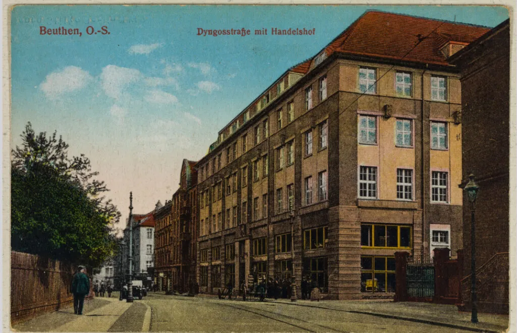 Mówiąc dziś o biurokracji, nie zdajemy sobie sprawy, że ponad sto lat wyglądało to podobnie. Jak będziecie mogli przeczytać, prócz budynku przy ul. Katowickiej 18 (koniecznie przy okazji spaceru przyjrzyjcie się herbowi na elewacji), były także inne: przy Rostka, Witczaka, Chrobrego, Webera.