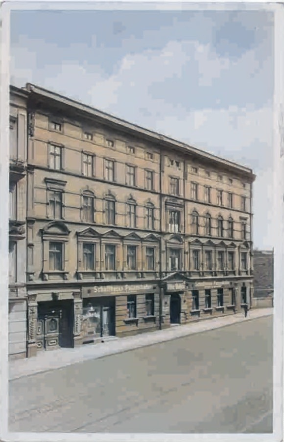 Z kolei secesyjny obiekt przy ul. Rycerskiej 17 z 1904 r. to przebudowana przez Lierscha kamienica Schlesingera. Odchodzi on tutaj od neorenesansu na rzecz secesji z zaokrąglonym narożnikiem z dużymi połaciami tynku o rożnych kształtach z rzeźbiarskimi motywami roślinnymi. Był to zresztą jego własny budynek. 1880 r. obiekt był we własności wdowy Kleemann, sprzedany piekarzowi Simonowi Schlesingerowi w 1899 r. Liersch kupił go w 1903 r., po jego śmierci w 1912 r. odziedziczyła go Marthe Liersch, a później jej spadkobiercy niewymieniani z imienia.