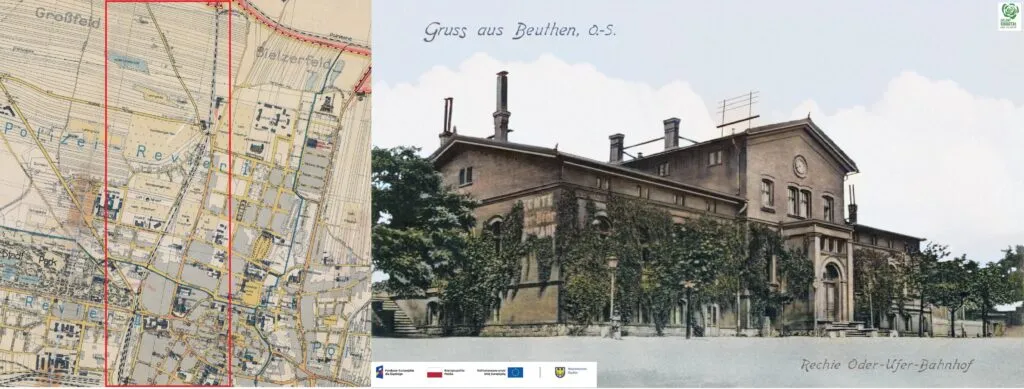 Zacznijmy od początku. W Bytomiu było wiele dworców, a jednym z nich był dworzec Kolei Prawoodrzańskiej (na fotografii). Torowisko tej kolei nie przebiegało równolegle do układu torów przy współczesnym dworcu PKP, ale jakby na przekór, prostopadle, co możecie zobaczyć na mapie.