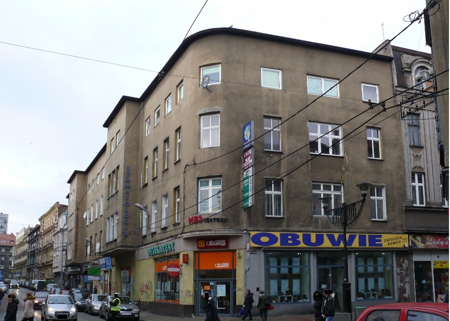 Patrząc na zaokrąglony wykusz na narożu i jeszcze dwa wykusze prostokątne, możemy być pewni, że nie mamy do czynienia z kamienicą modernistyczną. Tak się po prostu nie projektowało w tym stylu. Zresztą skąd w tej przestrzeni modernizm? Musiałby to być obiekt wtórnie przebudowany. I rzeczywiście tak było. Co zatem się stało?