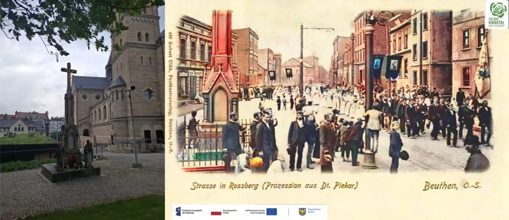 Władze wyraziły zgodę i krzyż przeszedł kilkaset metrów. Jednak jak widzicie na fotografii, pierwotnie figury św. Jacka i św. Floriana nie stały po jego bokach.